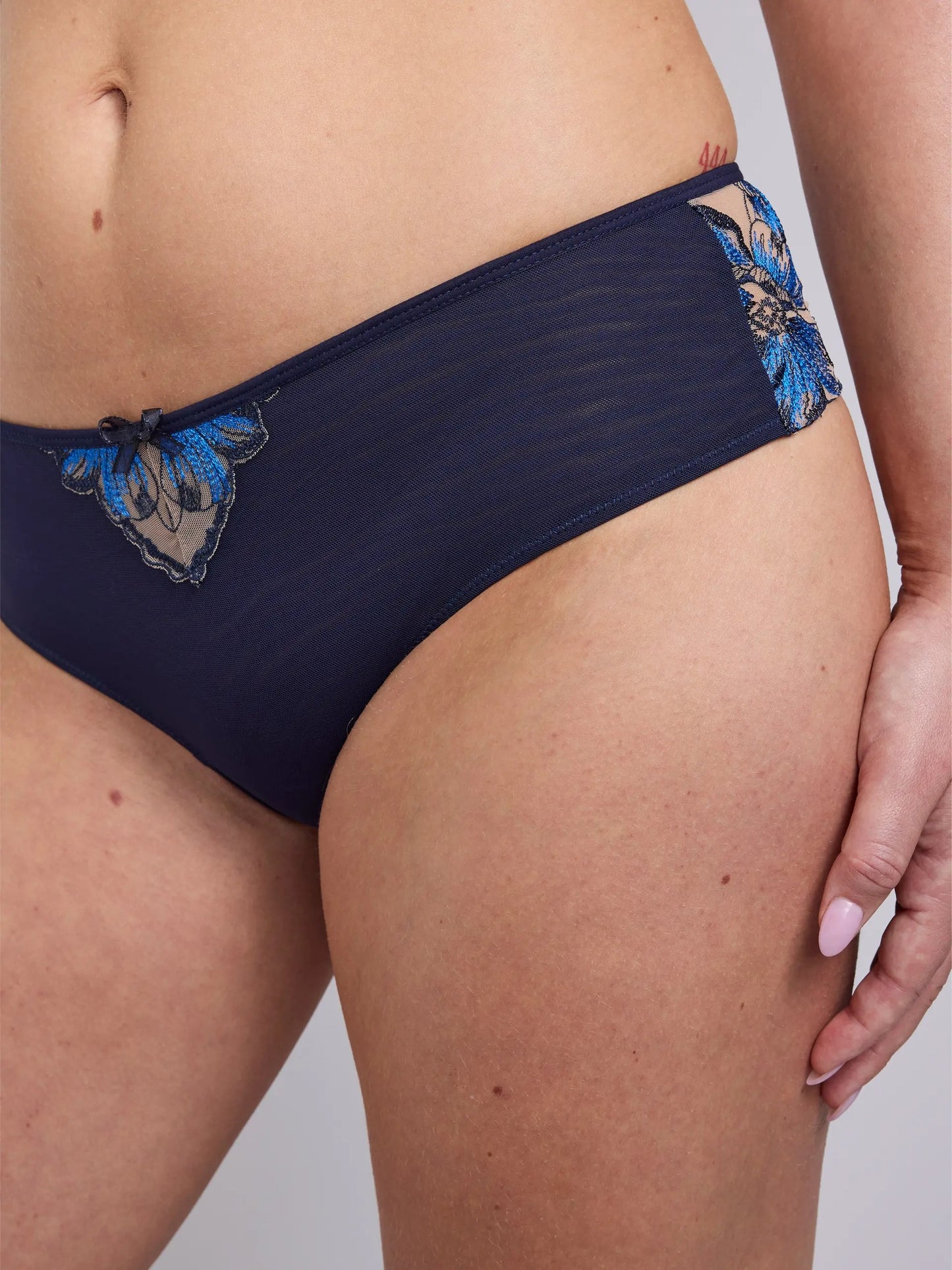 Colette Hipster String ühendab hipster‑lõike naiseliku vormi ja stringi mängulisema, julgema ilmega. Läbipaistev võrk ja koobaltsinine lilletikand loovad stiili, mis on samaaegselt õrn ja veidi vallatu.