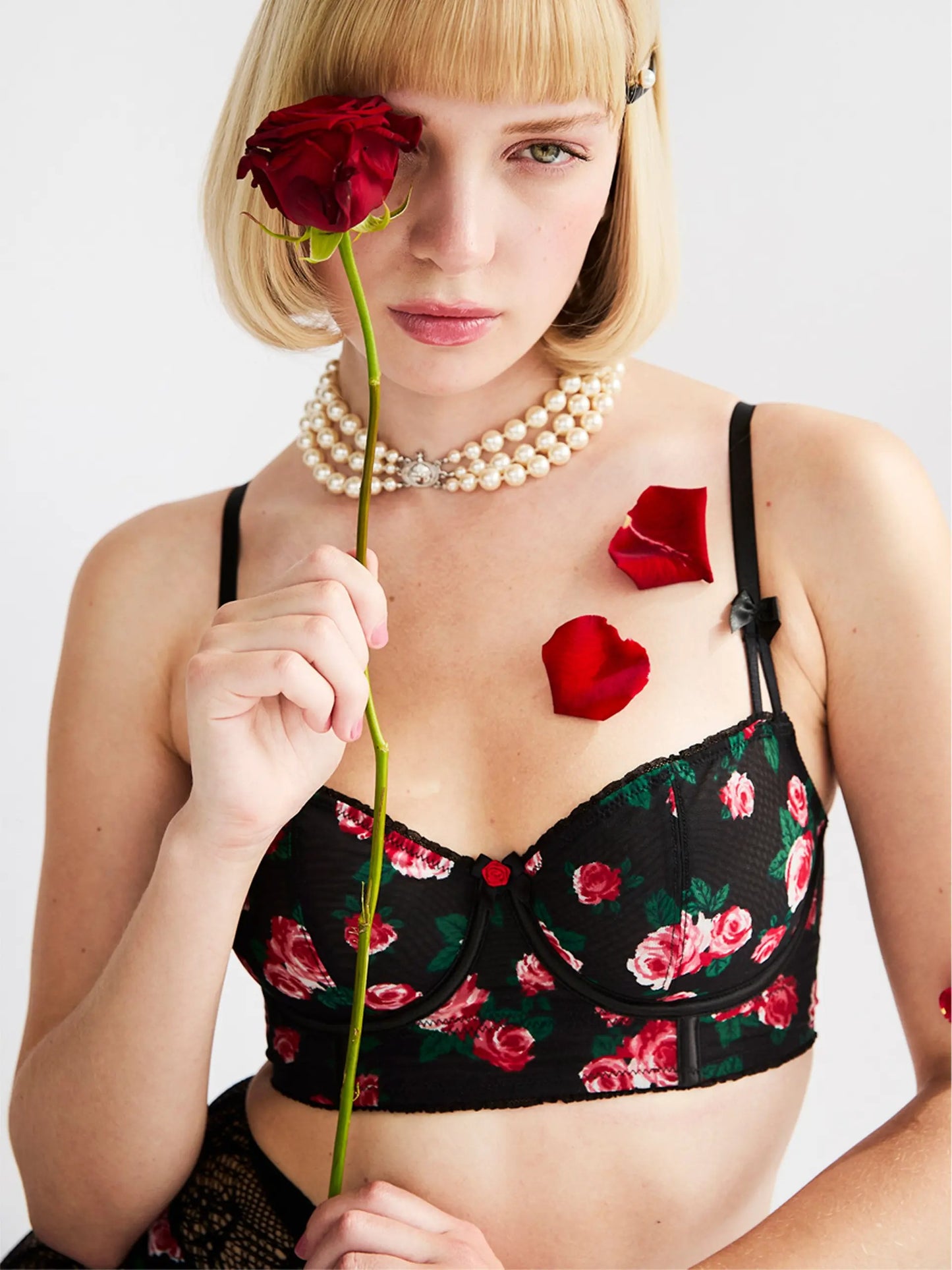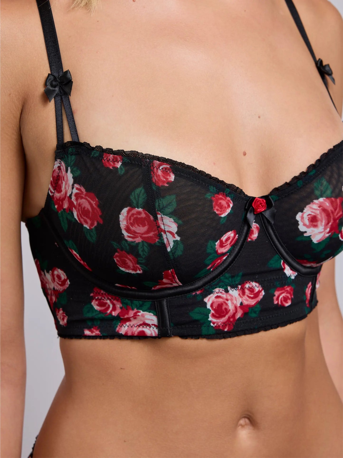 Retro romantika kohtub moodsa kunstiga. Laurel Balconette Long Line pakub meelitavat, toestavat, julget roosiprindi ja õrnade detailidega välimust.