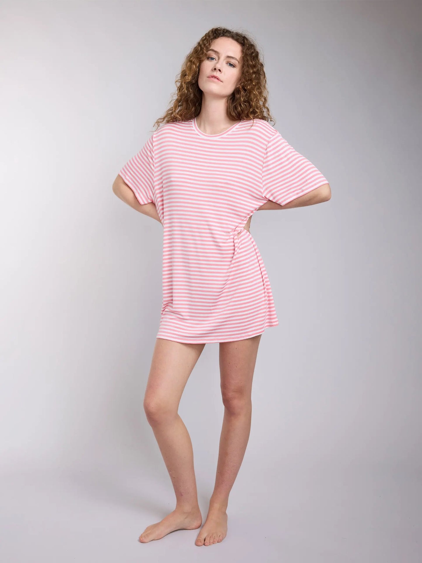 Roosa valge triibuline Alba viskoosist öösärk